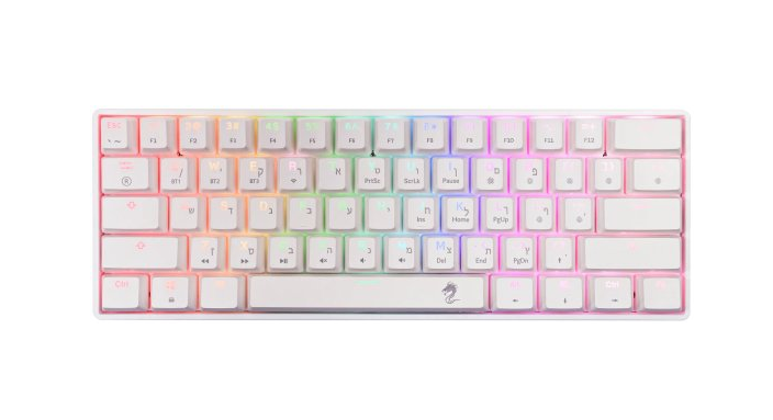 מקלדת גיימינג מיני מכנית אלחוטית Dragon RGB MK61 MINI KEYBOARD WHITE