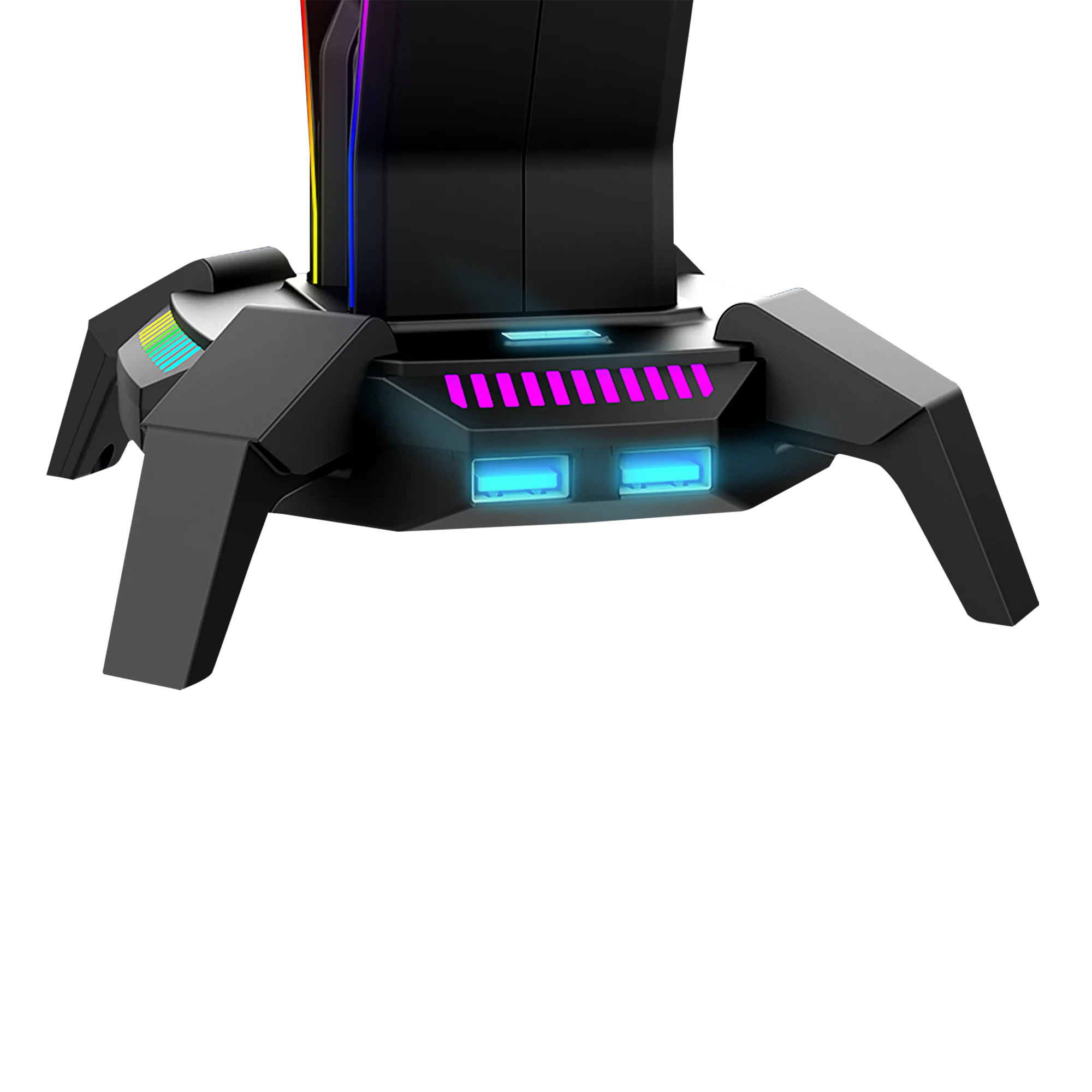 המעמד כולל תאורת RGB היקפית עם כפתור שליטה ייעודי המאפשר לעבור בין אפקטים שונים ולהוסיף מראה גיימינג מודרני לעמדת המחשב.